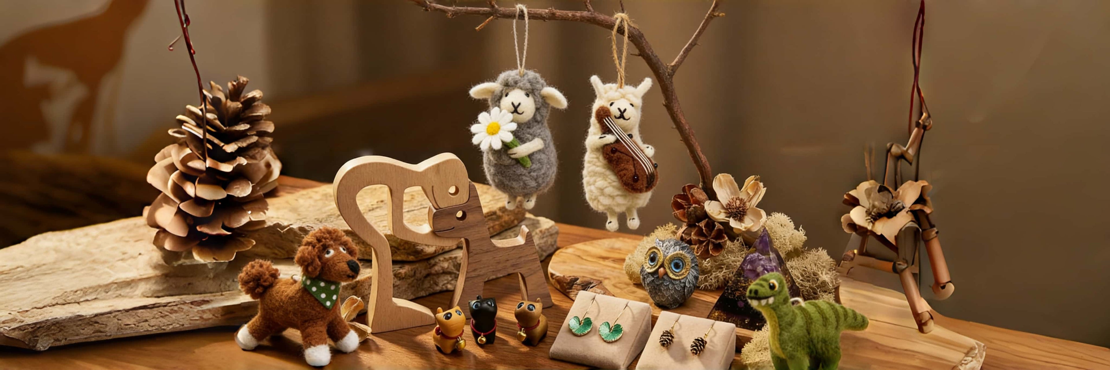 Artisanal Wool Felt Sheep Hugging Daisy Charm